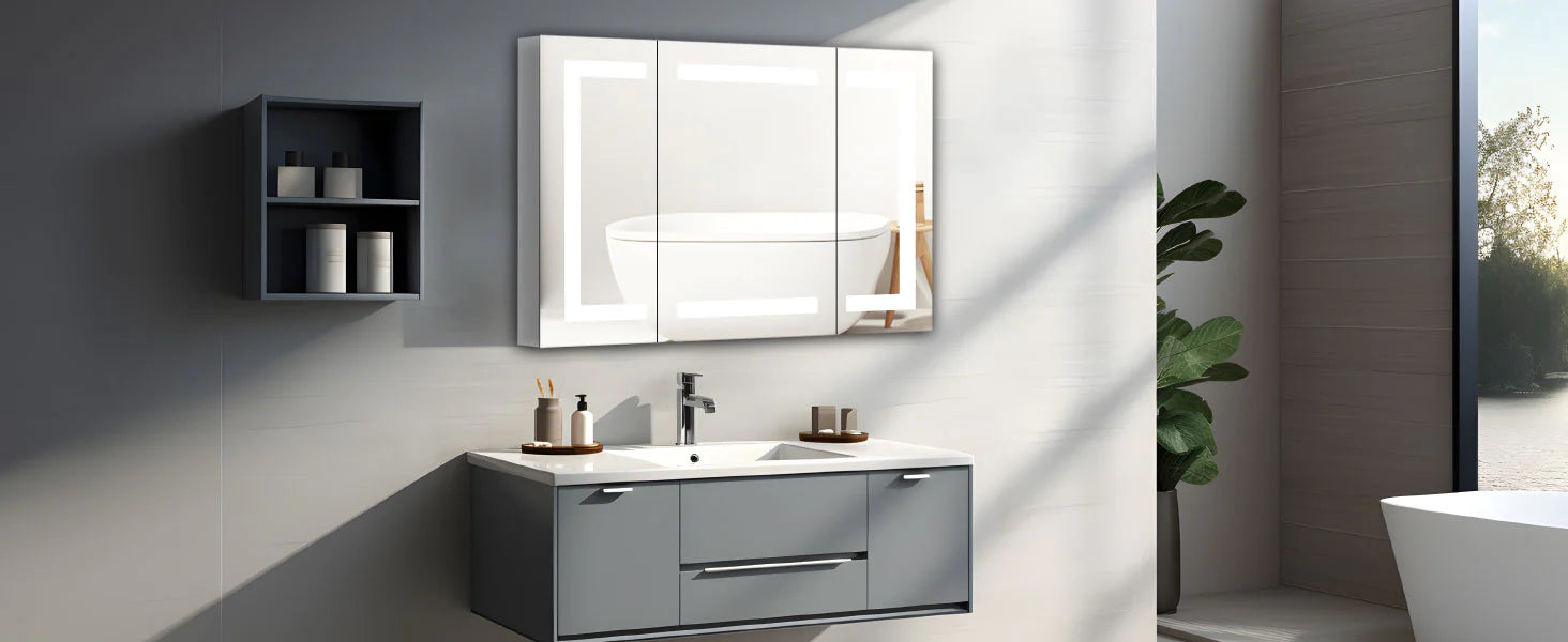 Illuminate your grooming routine with integrated LED lighting. Our Mirror Cabinet not only reflects your image but also enhances visibility, making it an ideal choice for precise tasks like shaving or applying makeup.