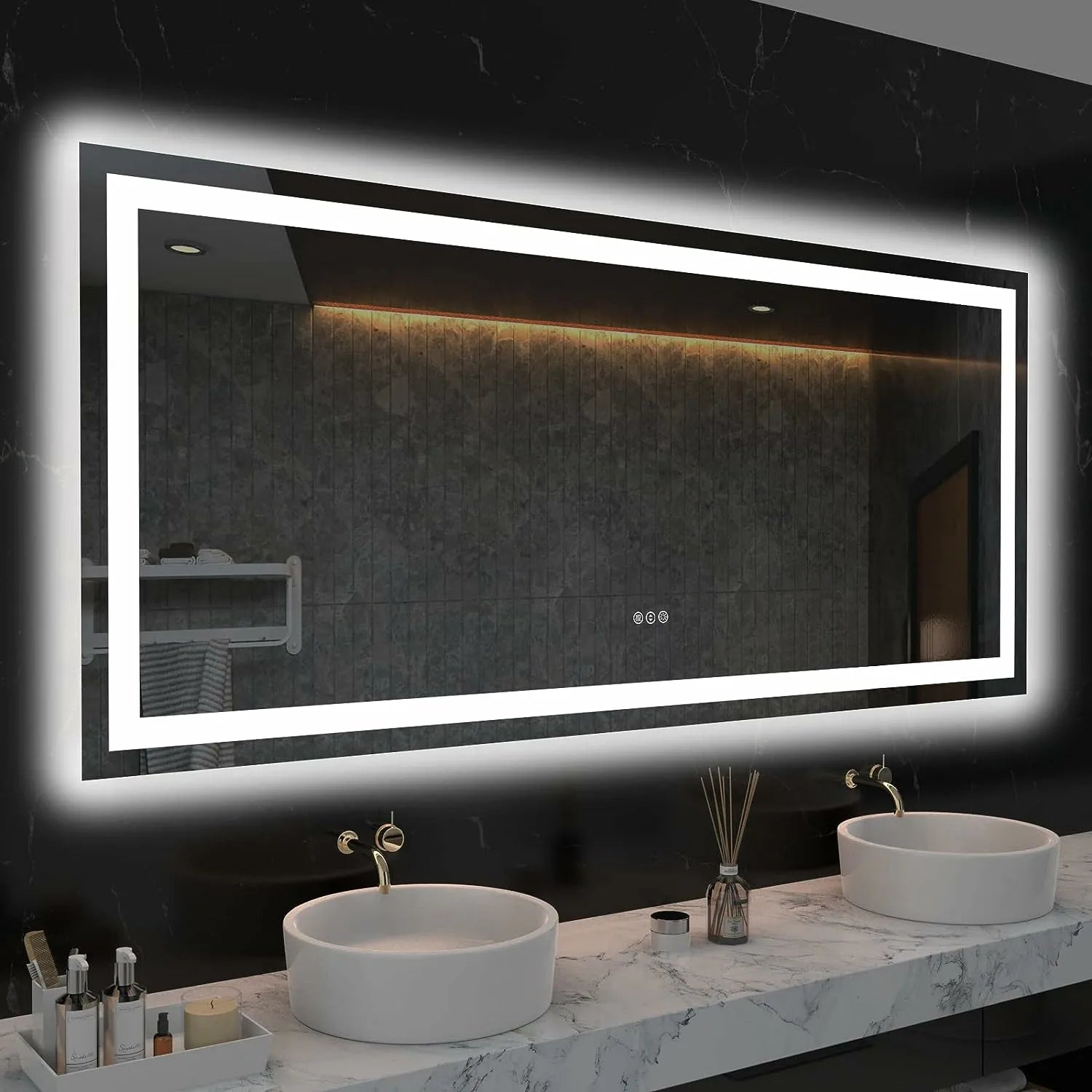 LOAAO LED bathroom mirror is designed with both backlight and front light. Double lighting sources designed to make the mirror bright enough for you to do makeup, skin care, shaving and dressing up. Super bright.